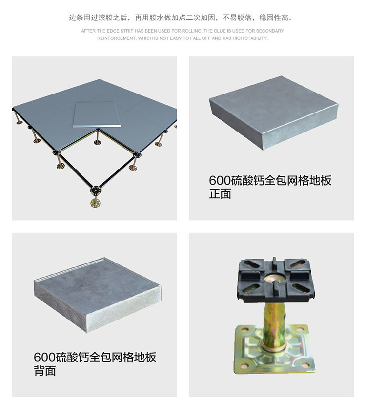 硫酸鈣網絡地板采用硫酸鈣為基材,板芯六面均用鍍鋅板包合而成,地板不易受潮,不易變形,耐燃燒時間更長,使用壽命長,安裝好的地板下面形成通路,方便下面地板走線,線路檢修。地板無需除油磷化噴塑,平整度好、邊不反翹,環保、強度大,密封性及穩定性好。