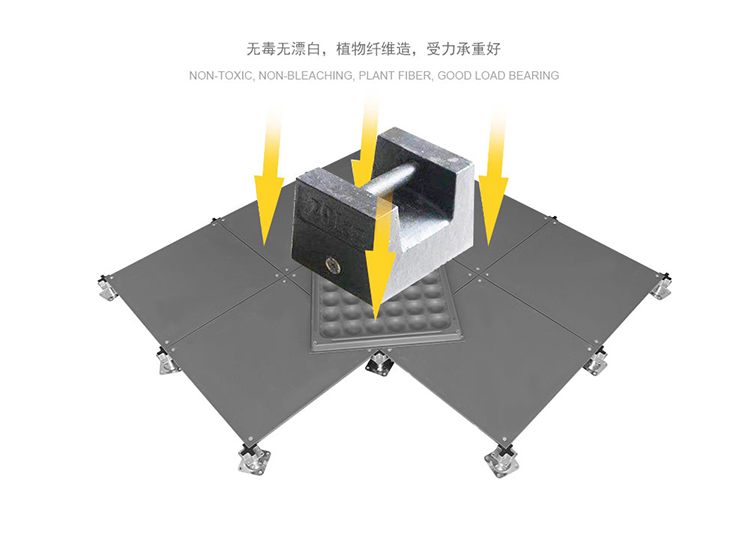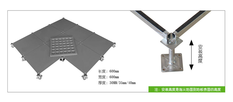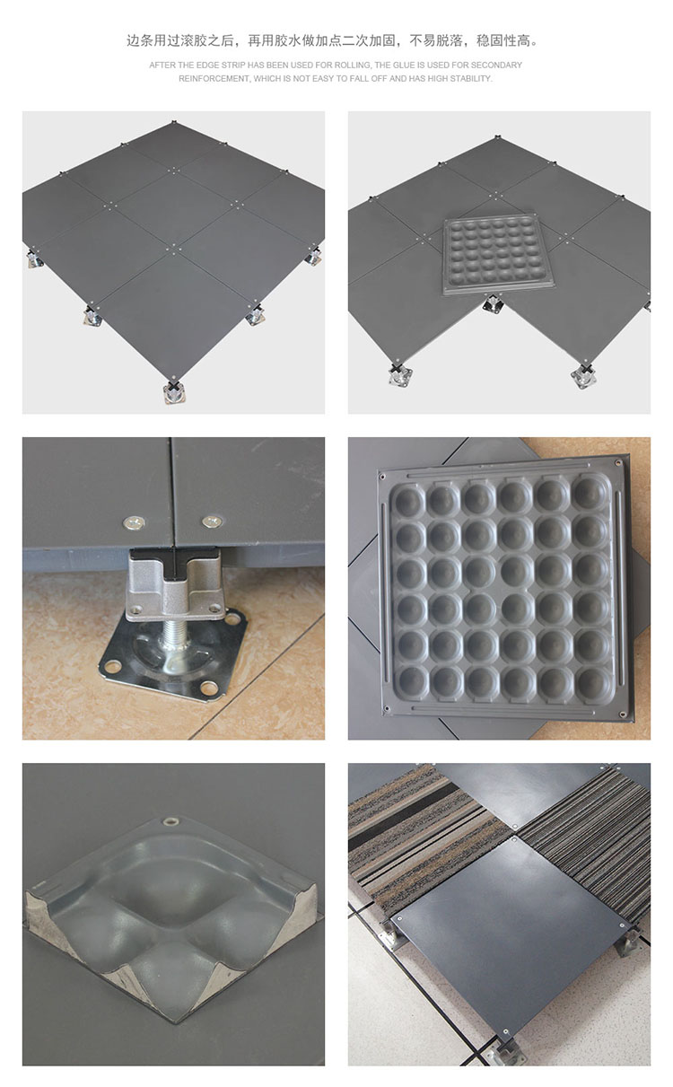 該地板可以選配帶出線口的配置,可根據要求任意添加線槽布線更具靈活性。此地板可以將強、弱電分開隔離,同時也便于檢修。安裝采用無梁角鎖,具有牢靠、穩定、調平、簡便之特點。